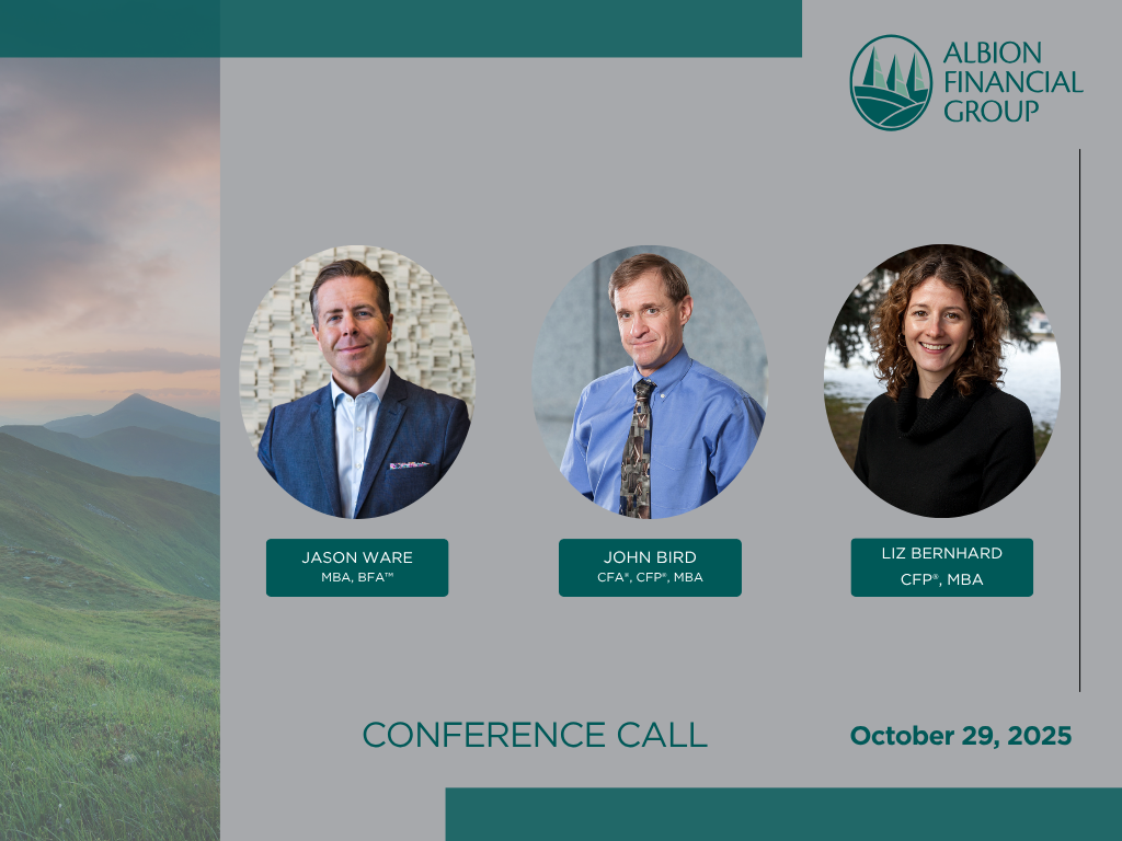 Albion Financial Group’s Spring 2026 Conference Call with our leadership team, including John Bird, CEO, Liz Bernhard, President, and Jason Ware, CIO, discussing current economic concerns, financial planning strategies, and addressing audience questions.